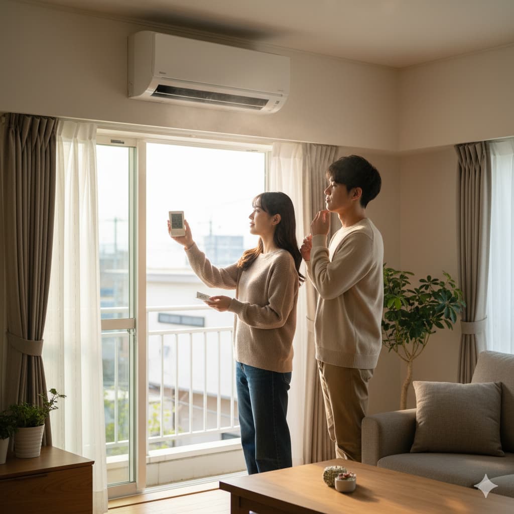 最も簡単で、誰でもすぐに実行できる最も効果的な方法が換気です。暖房を本格的に使い始める日は、まず部屋の窓を2ヶ所以上開けて、しっかりと空気の通り道を作りましょう。その状態で暖房運転を開始し、最初の10分〜15分程度、換気を続けてください。これにより、エアコン内部から勢いよく吹き出された臭いの原因物質やホコリ、カビの胞子を、部屋に充満する前に効率よく室外へ排出することができます。