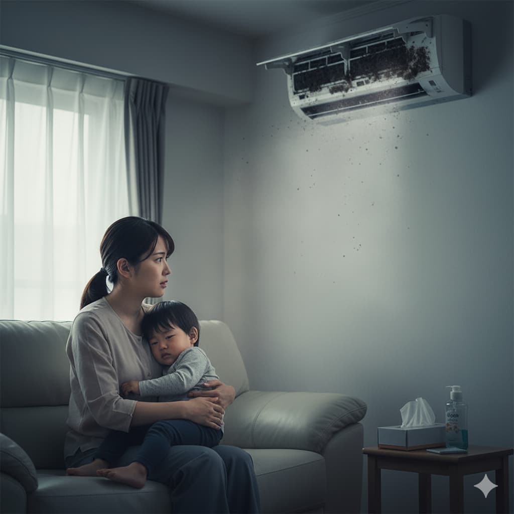 特に、免疫機能がまだ十分に発達していない小さなお子様や、体力の低下しているご高齢者、もともとアレルギー体質の方がいるご家庭では、健康な成人に比べて影響が出やすいため、より一層の注意が必要です。家族の健康というかけがえのないものを守るためにも、エアコンの臭いは「不快なもの」ではなく「健康を脅かす危険信号」と捉え、早急に対処することが何よりも大切です。