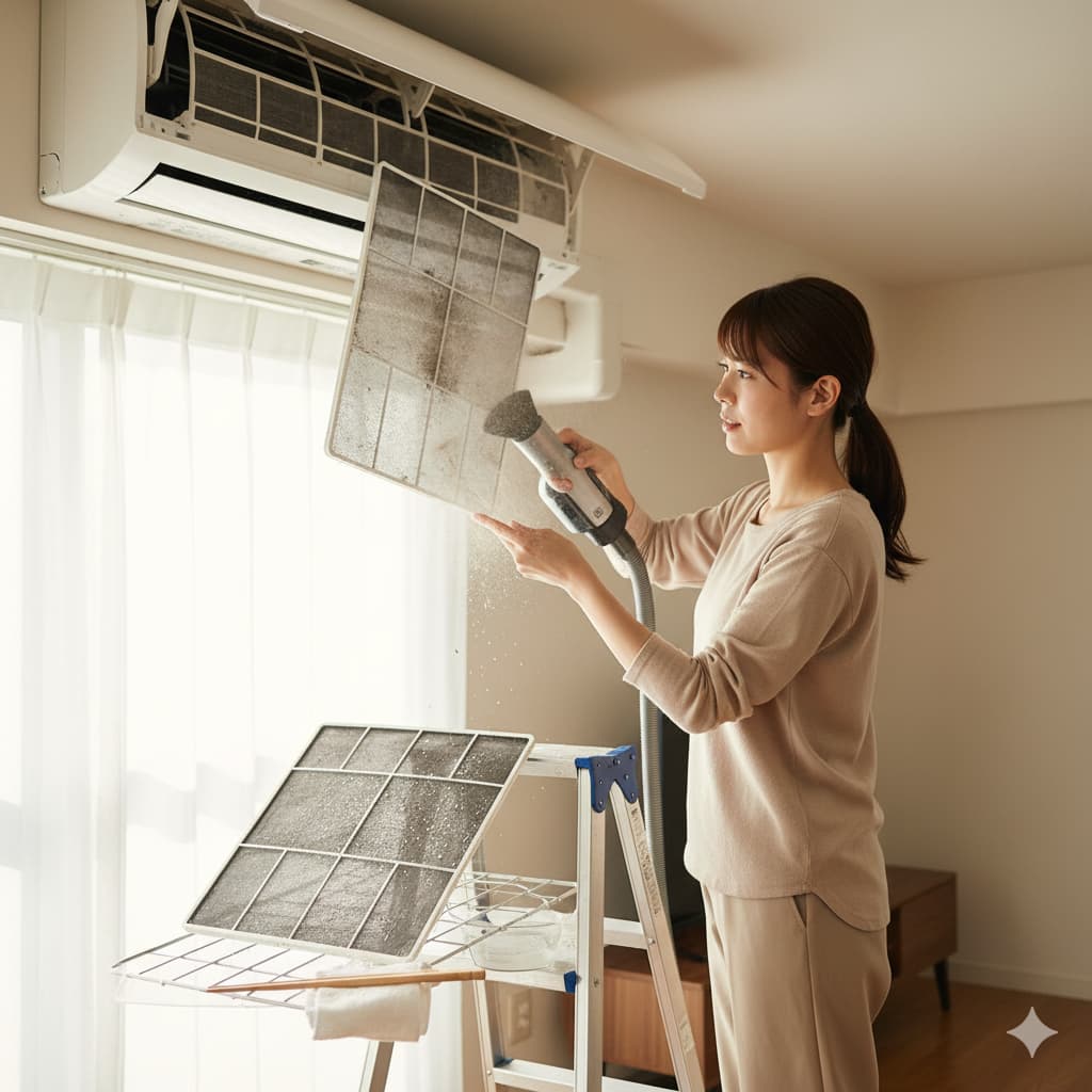 エアフィルターの掃除手順:臭いと電気代に直結!