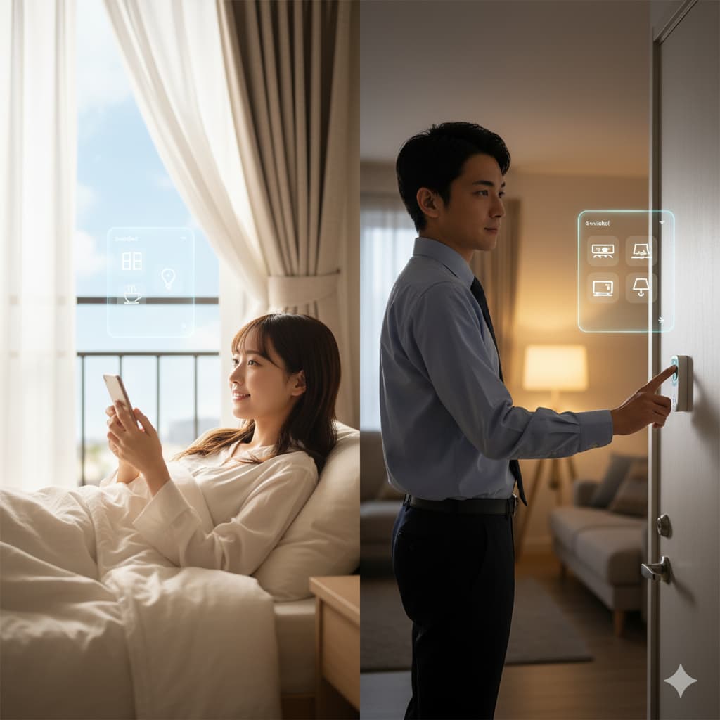 シーンとは、複数の操作をひとまとめにして、ワンタップや音声で実行できるようにする機能です。「その他」モードで登録した暖房ボタンや、他のSwitchBotデバイス(照明、カーテンなど)の操作を組み合わせることで、生活が格段に便利になります。