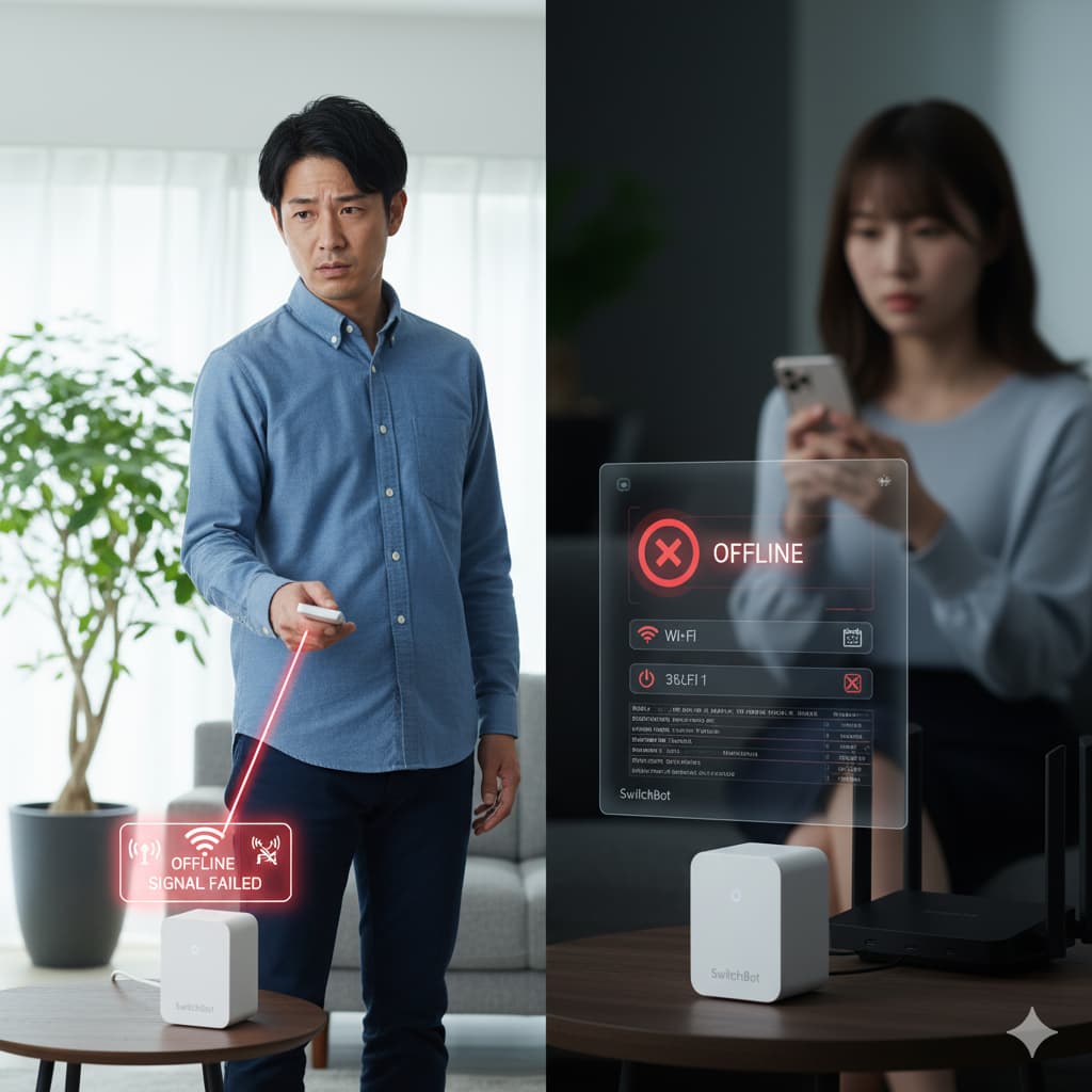 ハブミニにはこの受信・同期機能がありません。そのため、家族が物理リモコンで「暖房ON」にした場合、SwitchBotアプリ上の表示は「OFF」のまま(最後にアプリで操作した状態)となり、実際の運転状態とアプリの表示がズレてしまうことがあります。ハブミニの場合、アプリの表示は「最後にSwitchBotから送信した命令」に過ぎないと割り切って使う必要があります。
